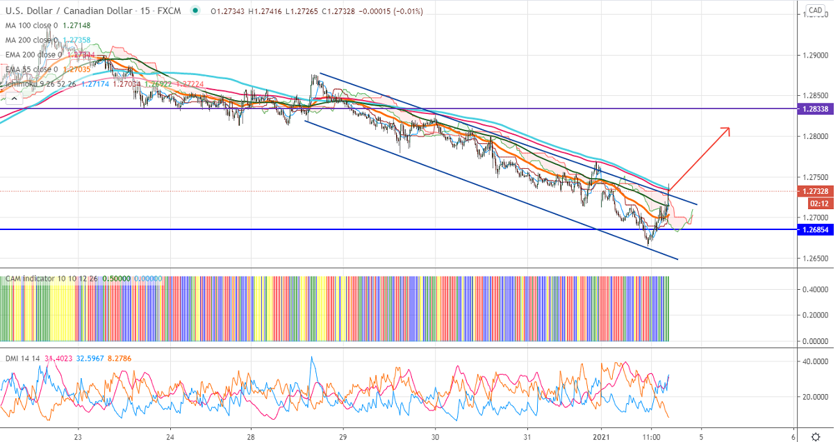 USDCAD has shown a good recovery of more than 70 pips from a multi-year low of 1.26650. The slight pullback in the US dollar came after UK PM said Scotland will be under lockdown at midnight tonight. Tough measures to control the coronavirus in the UK will be announced soon. USDCAD hits an intraday high of 1.27389 and currently trading around 1.27338.