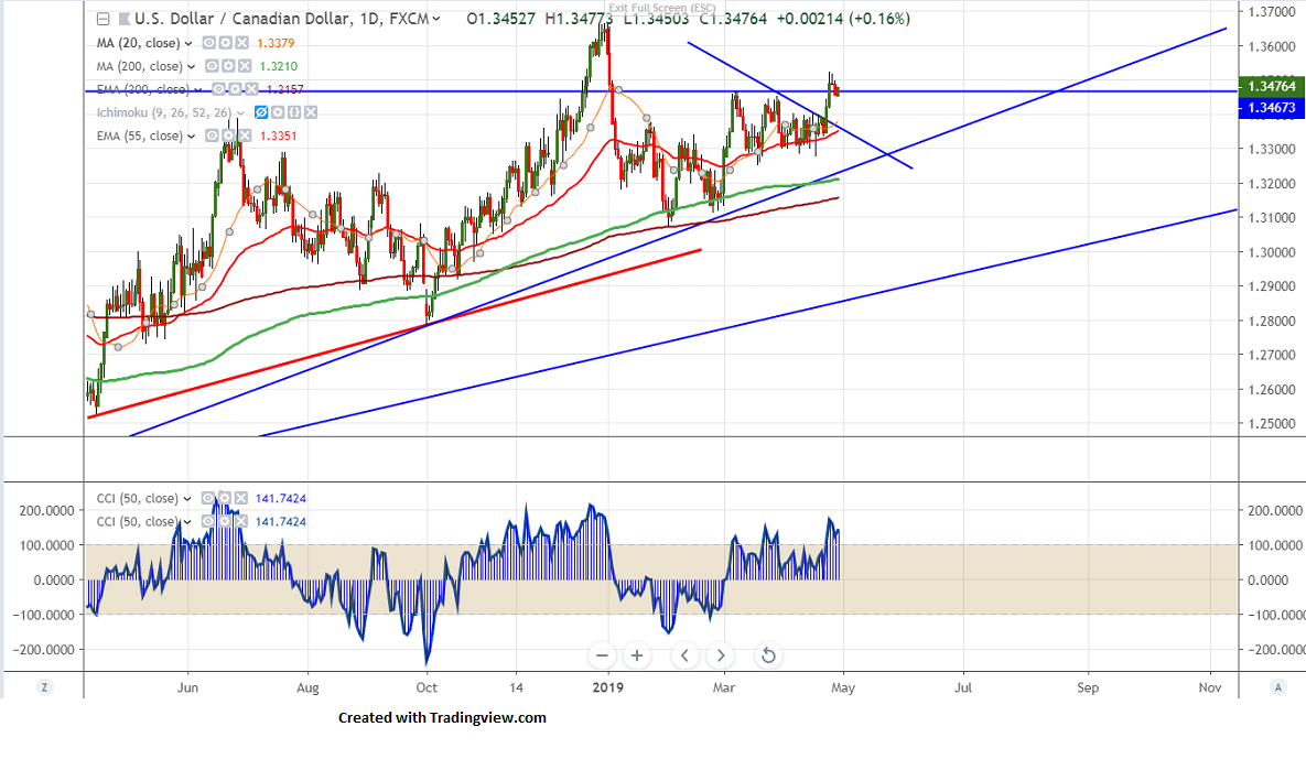 The near term resistance is at 1.35250 and any convincing break above will take the pair till 1.3580/1.3660.