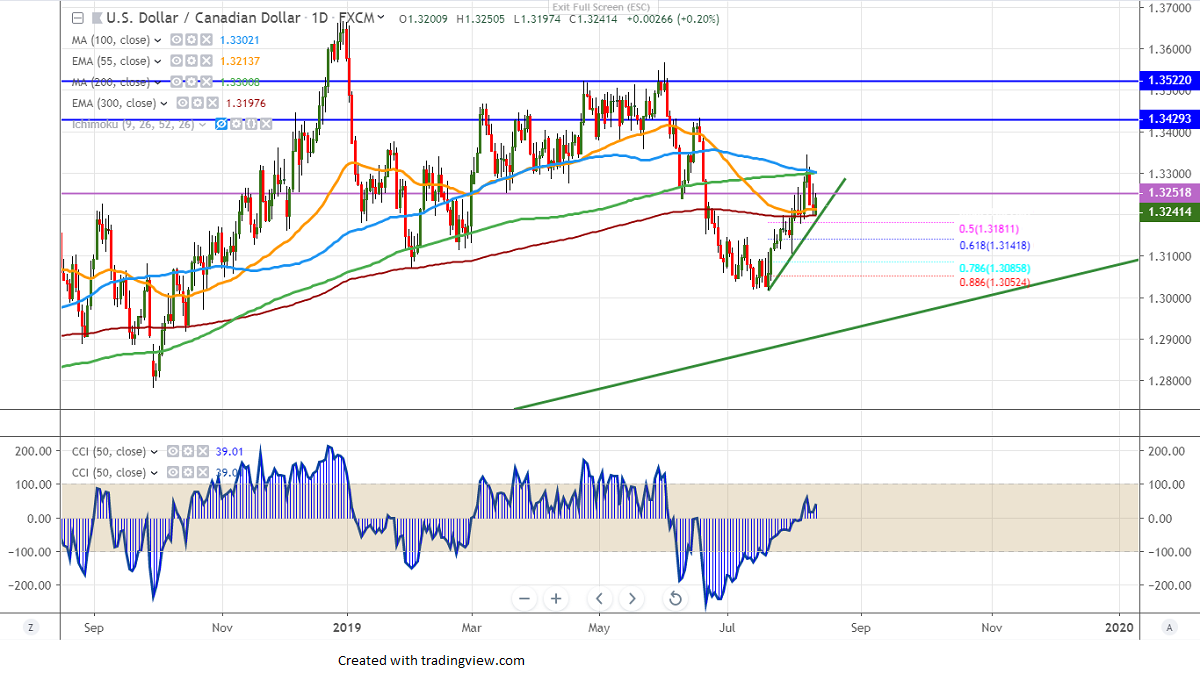 USDCAD has halted its 2 –day of weakness and shown a minor recovery of nearly 50 pips after releases of weak Canadian jobs data. Canada economy has lost more than 24000 jobs in Jul compared to a forecast of 15.2k and the unemployment rate jumped to 5.7% compared to an estimate of 5.5%. The pair hits an intraday high of 1.32500 and is currently trading around 1.32500.