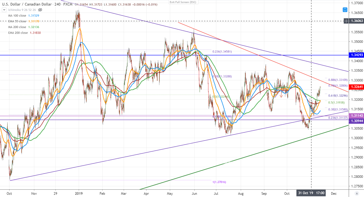 USDCAD continues to trade higher and hits 4-week high onboard- based US dollar buying. The Canadian economy has lost 18000 jobs in Oct first decline since Jul 2019. This increased hopes of rate cut by BOC in the coming months. It hits a high of 1.32667 and is currently trading around 1.3641.