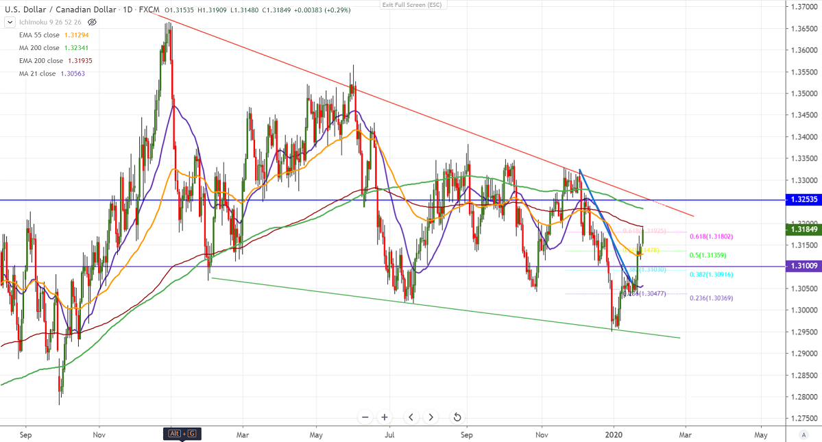 USDCAD is facing strong resistance around 1.31950, any further bullish continuation only beyond that level. Any break up targets 1.31800/1.3238.
