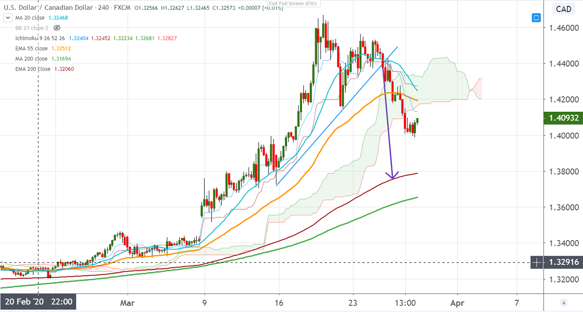 USDCAD recovered more than 100 pips from a low of 1.3988 on a minor increase in the US dollar index. DXY surged from 98.84 to 99.59 and any minor bullishness only past 100.95. The Canadian dollar was one of the worst performers this year due to coronavirus and oil price slump. The economy is expected to perform very worst in the coming quarter as it is mostly export-oriented. It is currently trading around 1.41776.