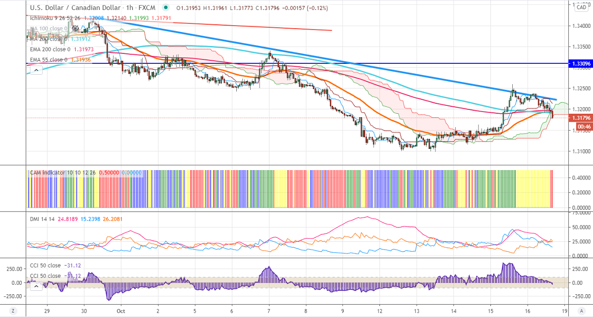USDCAD declined sharply and lost more than 80 pips despite weak Canadian manufacturing sales. It came at -2.0% in August compared to forecast of 1.4%. The hopes of COVID-19 vaccine has increased after Pfizer CEO said that it could apply for emergency use of coronavirus vaccine in Nov. the US rerail sales rose 1.9% m/m vs estimate of 0.7%. It hits an intraday low of 1.31778 and currently trading around 1.31842.