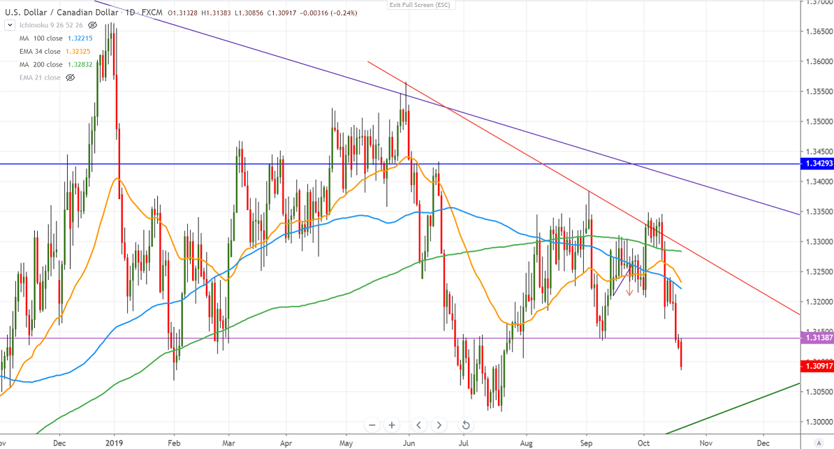 USDCAD continues to trade weak for 3rd consecutive week and lost more than 250 pips after forming a temporary top around 1.33458. The decline in Loonie was mainly due to broad-based US dollar selling on weak economic data. The slight easing of US-China trade tension is also supporting the Canadian dollar as the economy depends much on commodity exports. It hits a low of 1.31020 and is currently trading around 1.31045.
