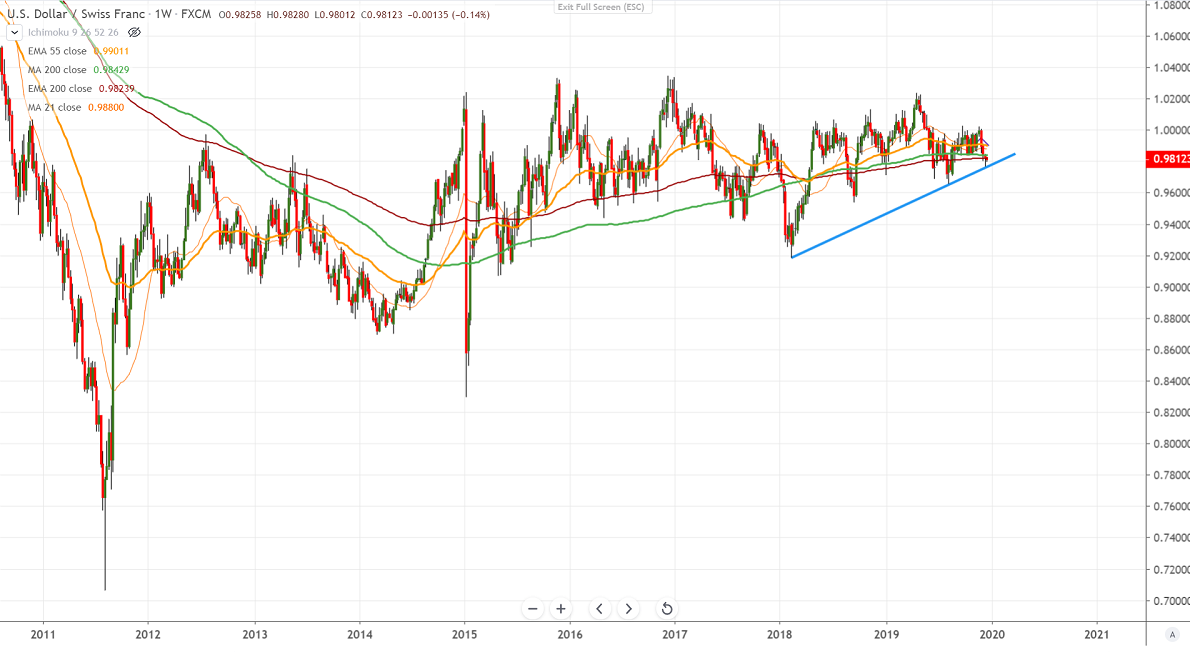 USDCHF continues to trade lower for the 4th consecutive weeks and hits low of 0.9770 the previous week. The pair is holding well below 200- W MA for 2nd week and this confirms bearish continuation. The dip was mainly due to board based US dollar selling and a slight increase in demand for Safe-haven assets.