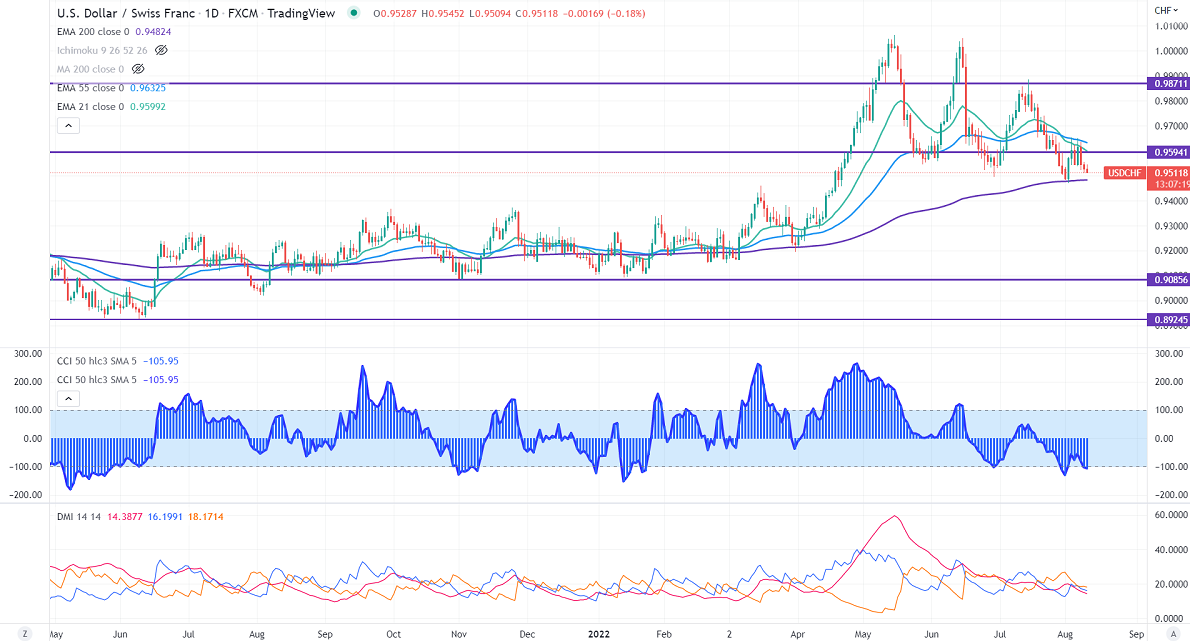 The pair trades lower for the third consecutive day and lost more than 150 pips on board-based US dollar selling. Markets eye US CPI data for further direction. The demand for safe-haven assets like the Swiss franc increased due to geopolitical tension between China and Taiwan. USDCHF hits a low of 0.95094 at the time of writing and is currently trading around 0.95135.