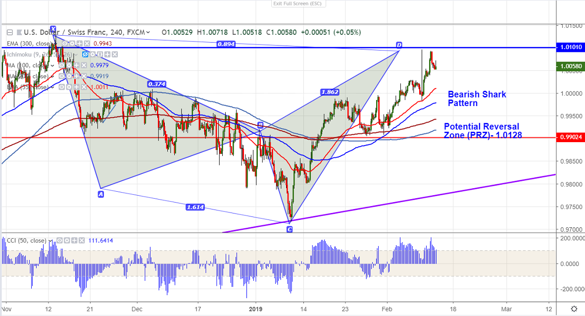 USDCHF was trading higher for more than one month and it hits high of 1.00927 yesterday nearly more than 350 pips. The pair has halted its long winning streak and declined nearly 40 pips. It is currently trading around 1.00566.