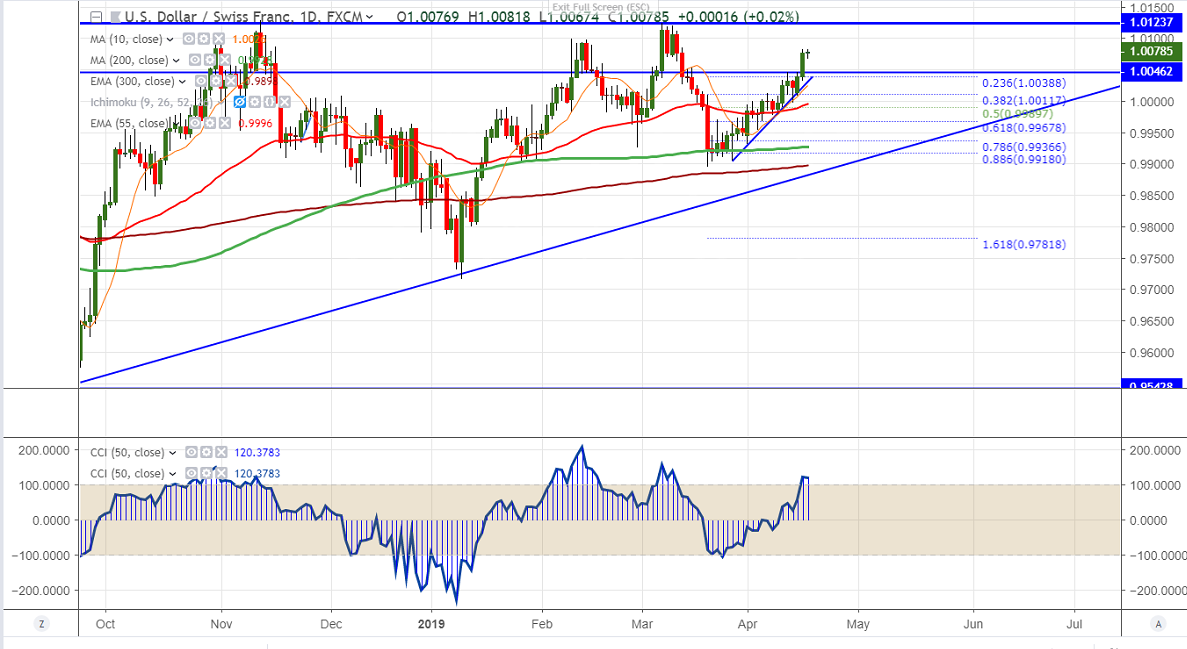 USDCHF is trading extremely higher and jumped more than 60 pips in this week.The jump was mainly due to US-China trade optimism and strong Chinese data has increased risk appetite.US markets S&P500 is trading higher for 4th consecutive week and jumped more than 4.5%.Chinese GDP data came slightly better than estimate. It came at 6.4% compared to forecast of 6.3%. It is currently trading around 1.00703.