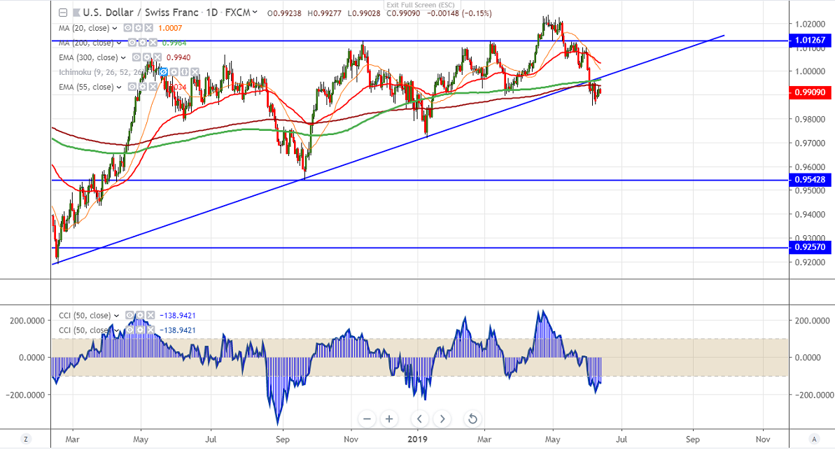 USDCHF is trading in narrow range between 0.98502 and 0.99365 for past three trading days.US dollar index was trading weak due to rate cut hopes on weak economic data especially US Non farm payroll data.US yield is trading on lower side and yield curve is still inverted with spread between US 10 year and 3 month narrowed slightly from 28 basis point from 13 basis point. Markets eye US CPI data for further direction. It is currently trading around 0.99123.