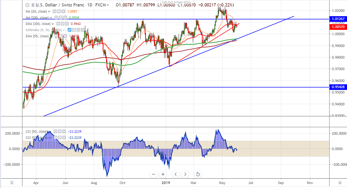 USDCHF has once again declined after a jump till 1.00981. US President Trump said that US will impose 5% tariff on Mexican imports from Jun 10th and it will increase to 25% in the coming months if Mexico does not take action to “reduce or eliminate number of illegal aliens”. US 10 year yield is trading lower after shown a minor recovery of more than 3% and hits 20-month low.It is trading around 2.179%. The spread between US 3 month and 10 year yield has widened sharply nearly 18 basis point. The pair hits intraday low of 1.00500 and is currently trading around 1.00609.