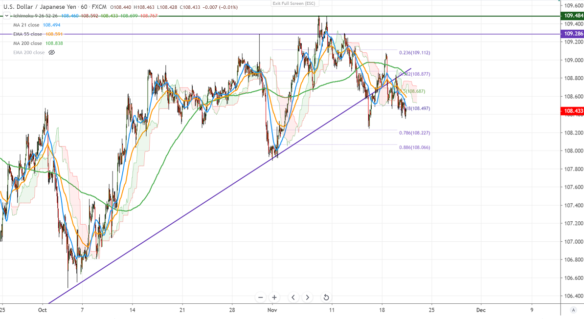 On the flip side, near-term major support stands at 108.24 (78.6% fib), break below that level will take the pair till 108/107.80. Minor trend reversal only below 107.80.