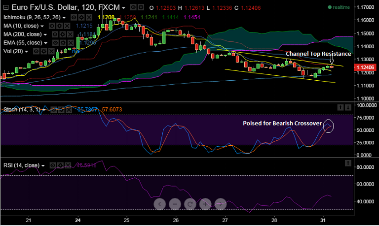 - Strong resistance seen at channel top by 1.1261, breaks above could see pair at 1.1300 levels