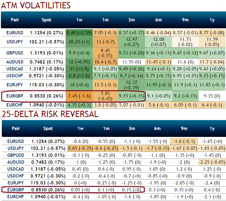 Since then, a bounce in economic indicators has been accompanied by a GBP bounce to levels where fresh shorts, vs EUR, are attractive.