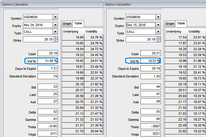 1w ATM IVs are spiking frantically above 21.6% which is quite conducive for option holders when underlying spot keeps plummeting in next 1weeks’ time; this is quite evident in payoff structure during various underlying rate scenarios.
