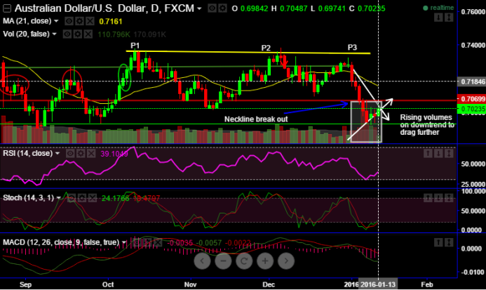 In addition to that we have also seen a decisive break below strong supports at 0.7070, currently attempting to recover at the same juncture but we cannot afford to build fresh longs before bounce above 0.7070 again convincingly.