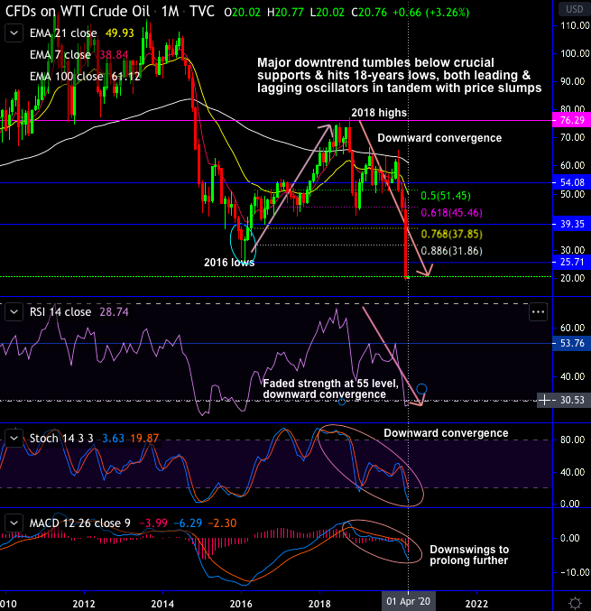 WTI crude price has tumbled to $19.29 levels which is 18-years lows, from the last couple of days the energy commodity has been oscillating around this price level.