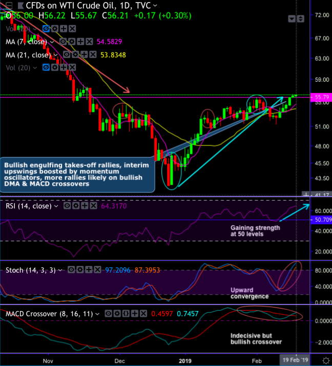 Technical and Candlestick Patterns: WTI crude prices have been spiking higher in the recent past to hit 3-months’ highs.