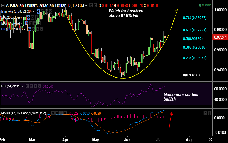 - Weakness only below 0.96 (38.2% Fib), break below could drag the pair to 0.93 levels.