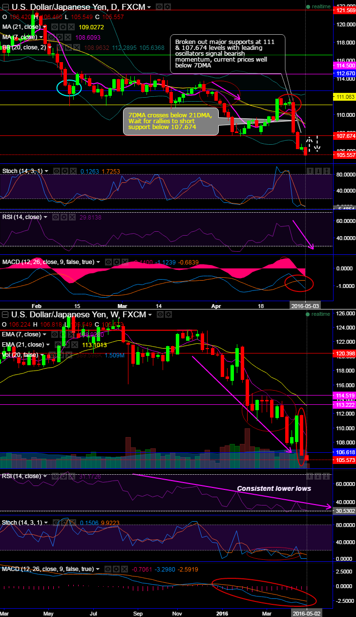 For now, Broken out major supports at 111 & 107.674 levels with leading oscillators signal bearish momentum, current prices well below 7DMA.