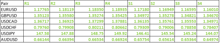 FxWirePro- Major Pair levels and bias summary