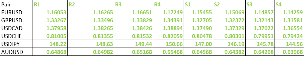 FxWirePro- Major Pair levels and bias summary