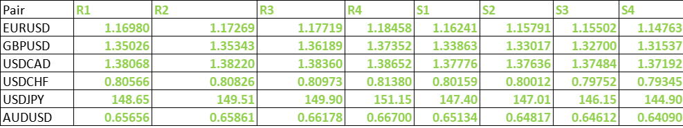 FxWirePro- Major Pair levels and bias summary