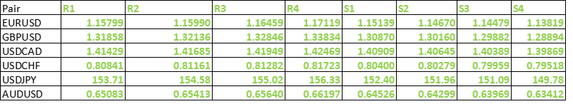 FxWirePro- Major Pair levels and bias summary