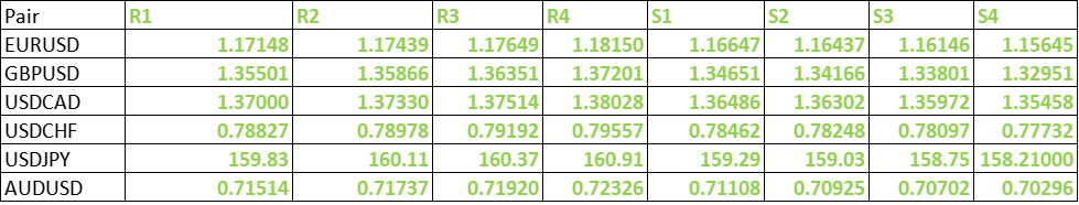 FxWirePro- Major Pair levels and bias summary