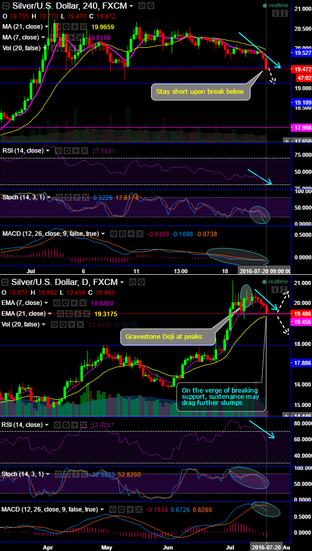 Subsequently, upon the sustenance below would be a more bearish environment in silver prices, otherwise bouncing back will have equal chances.