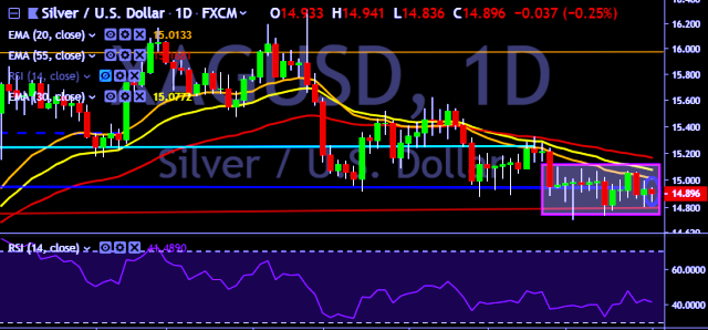 We prefer to take short position on XAG/USD around $14.92, stop loss at $15.02 and target of $14.67/$14.52.