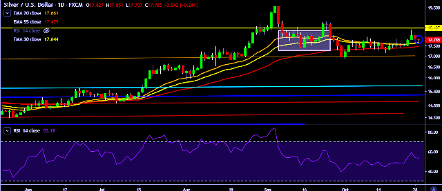 - XAG/USD is currently trading around $17.78 marks.