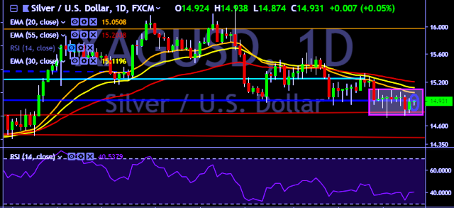 We prefer to take long position on XAG/USD around $14.91, stop loss at $14.85 and target of $15.02.