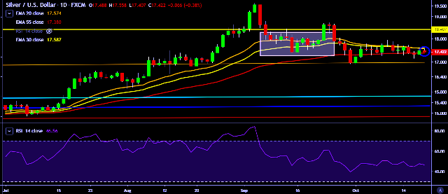 - XAG/USD is currently trading around $17.43 marks.