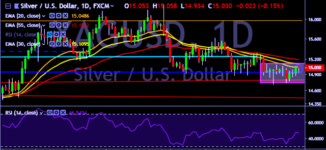 - XAG/USD is currently trading around $15.03 marks.
