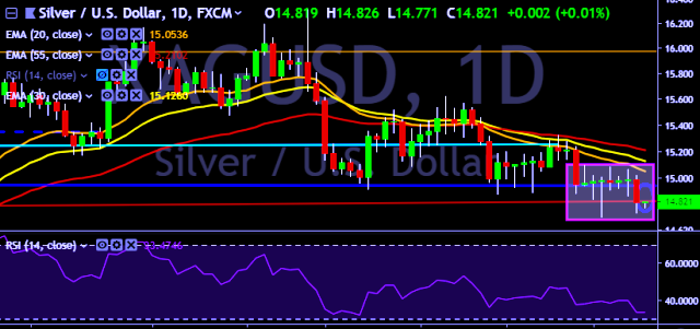 We prefer to take long position on XAG/USD around $14.82, stop loss at $14.75 and target of $14.94/$15.02.
