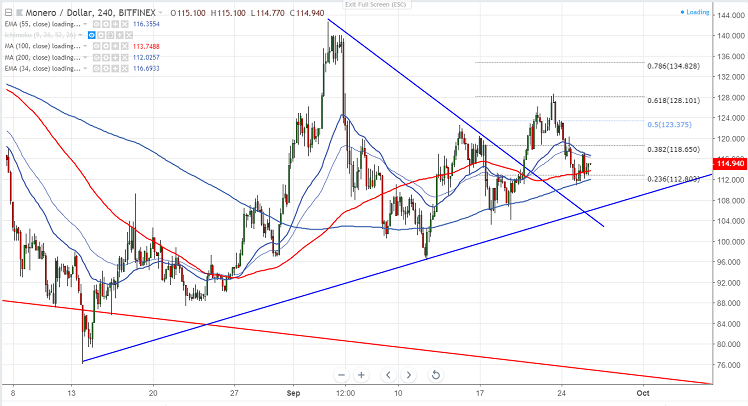 XMRUSD has shown a minor decline almost 15% after hitting high of $128.45. It is currently trading around $115.10.
