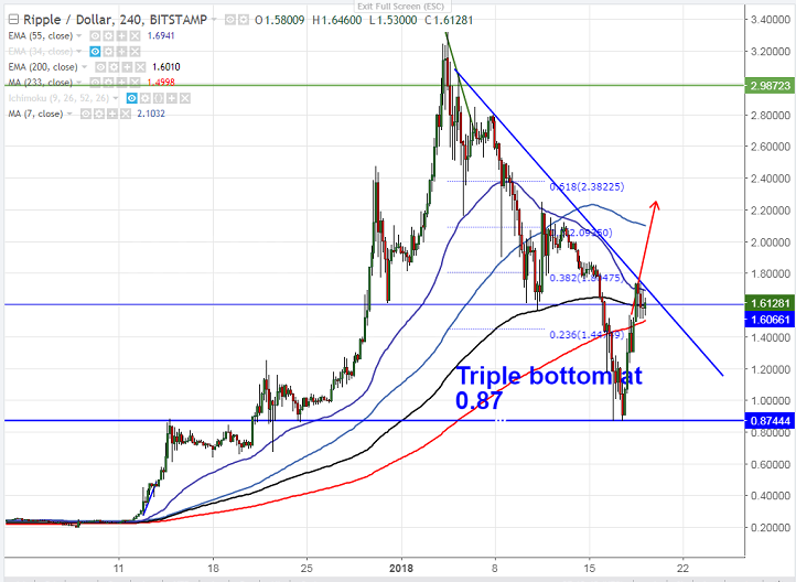 - On the higher side, near term resistance is around 1.60 (200- 4H EMA and 23.6% fibo) and any break above will take the pair to next level till 1.97/2.09. The pair should close above 2.25 level for further bullishness.