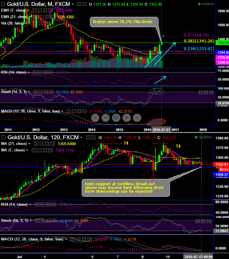 To conclude, the short-term trend seems little struggling, on the contrary, the prices can take off upwards any given time if it manages to hold 1350.37 and above on a closing basis to hit multi-month highs of 1391.97 levels.