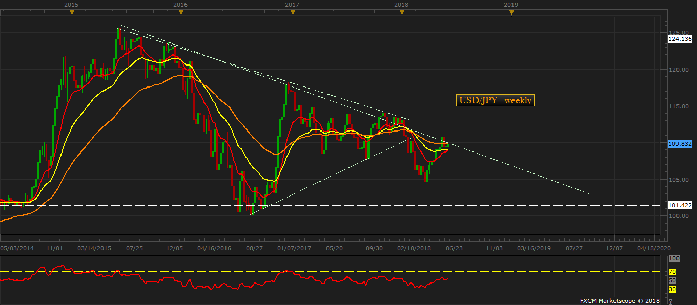 and after reaching the target it has risen to 109.8 as of today, riding on risk aversion stemming from European political turmoil, mainly in Italy and in Spain. In Italy, a euro-skeptic, austerity-skeptic coalition has come to power and in Spain, pro-EU Prime Minister had to step down after losing the no-confidence vote.