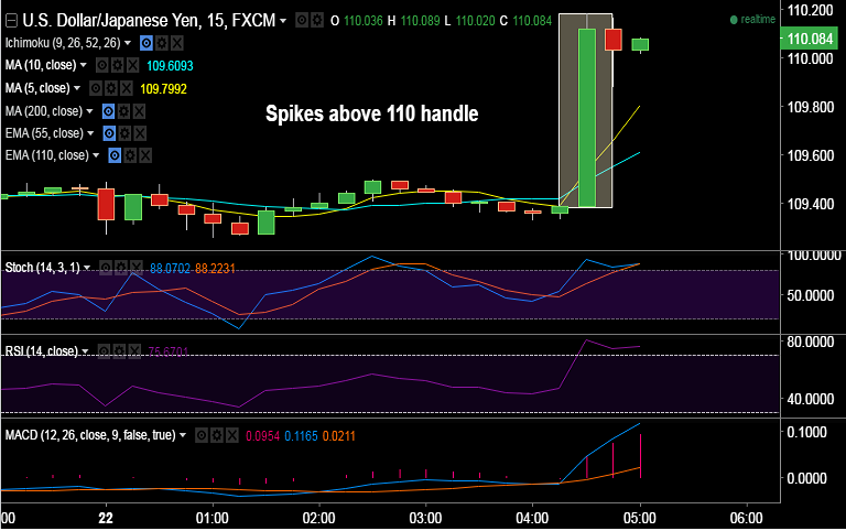 - USD/JPY saw a sharp 80-pips rally above 110 barrier in a knee-jerk reaction to the latest BOJ headlines.