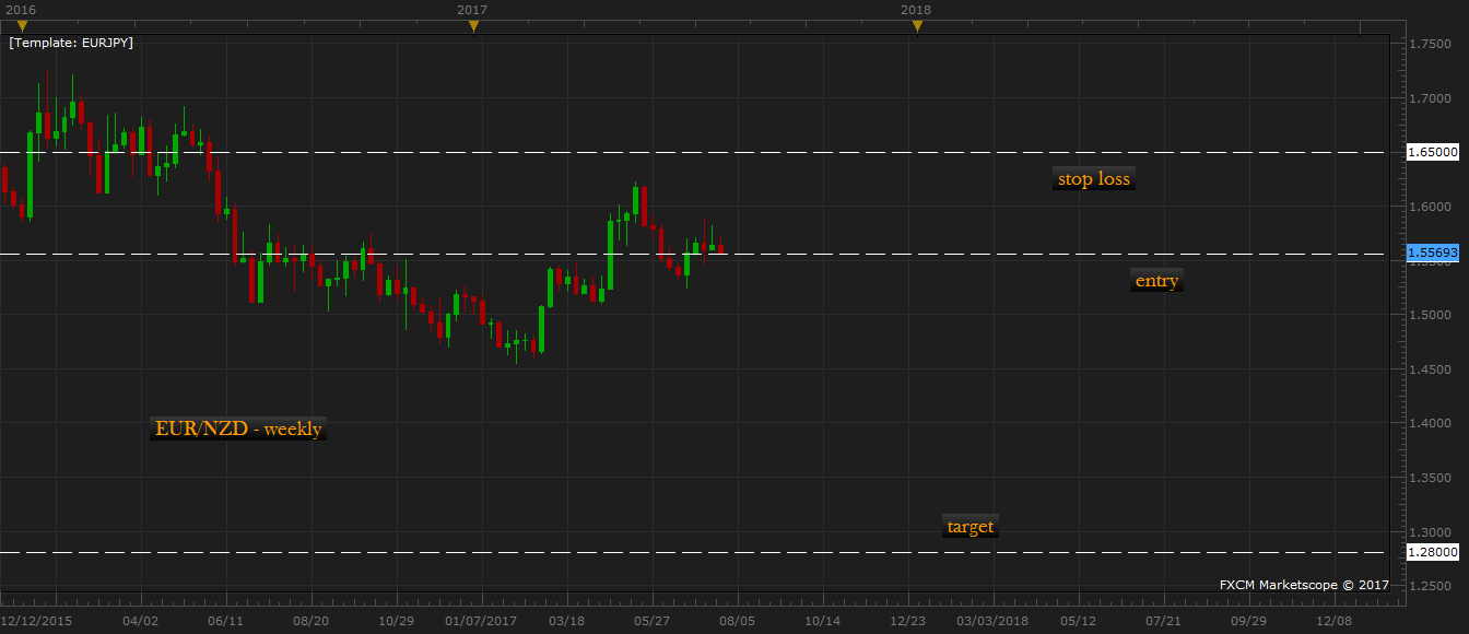 In July 2016, in the article named, “FxWirePro long term outlook: Euro likely to decline 2800 pips to 1.28 against Kiwi”, available at http://www.econotimes.com/, we recommended going short on the euro against the New Zealand dollar at 1.556 area with a target around 1.28.