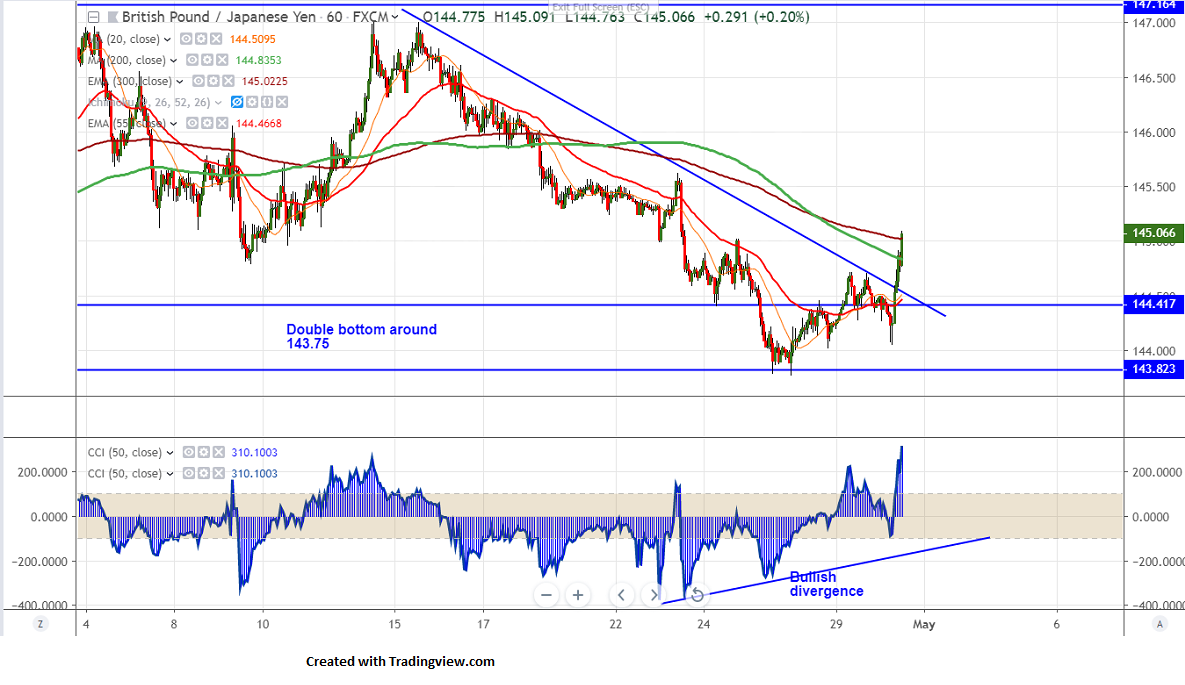 On the higher side, near term resistance is around 145.02 (300- H EMA) and any hourly close above will take the pair to next level 145.60/146.20.