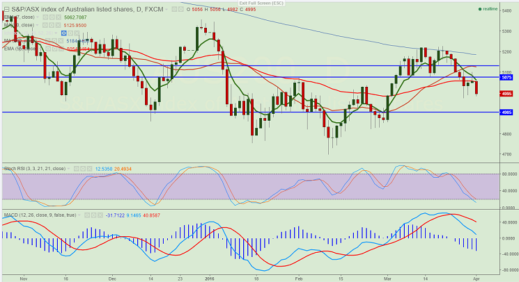 - ASX200 has broken minor support 5020 and declined till 4982 at the time of writing. It is currently trading at 4995.