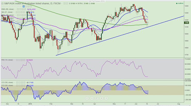 - ASX200 has recovered from the low 5093 made yesterday. The index has not closed below 200 day MA . It is currently trading at 5158.