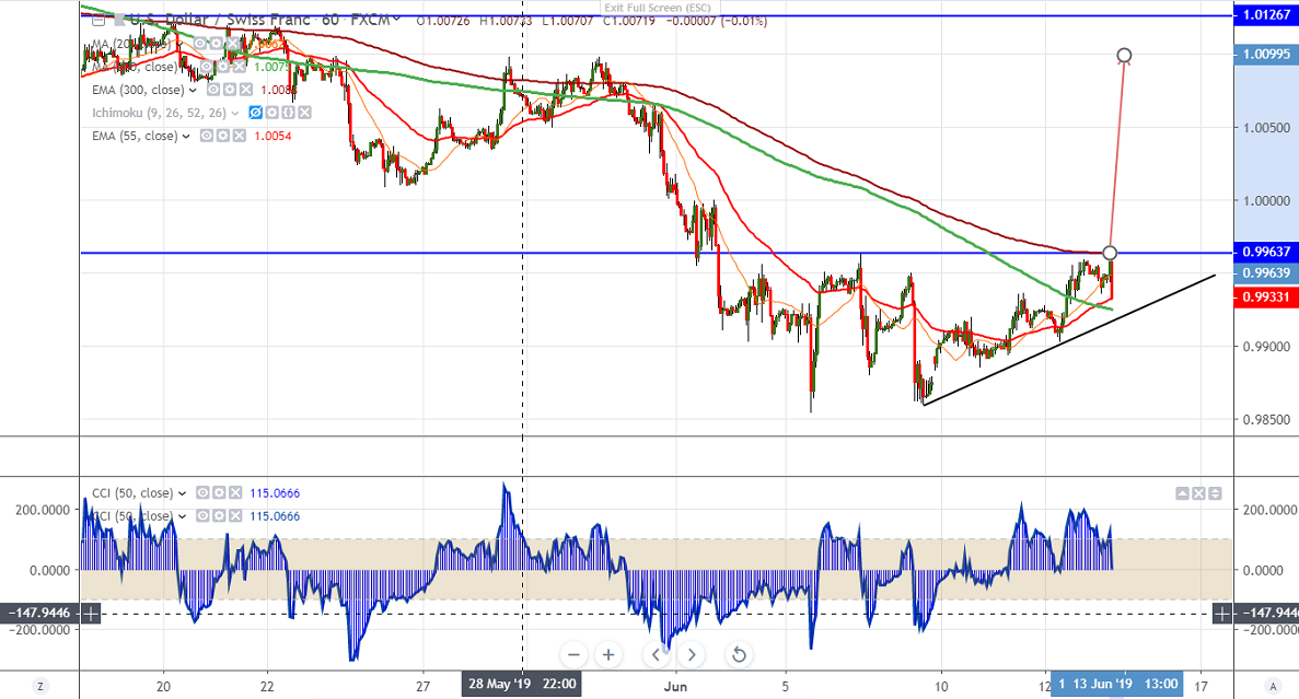 The renewed trade tension and hopes of rate cut is supporting Swiss franc. Overall trend was weak for past 10 days and lost more than 250 pips.