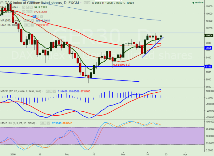- The index has taken support near 9750 55 day EMA) and jumped till 10098 at the time of writing. It is currently trading around 10003.