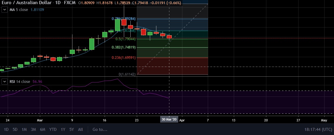 • EUR/AUD declined on Monday as investors braced for prolonged uncertainty to fight the coronavirus.