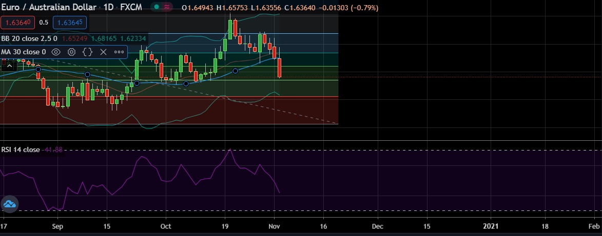 • EUR/AUD declined on Tuesday as markets braced for potential U.S. election uncertainty.