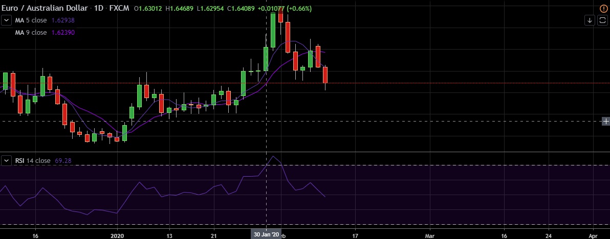 • EUR/AUD declined on Tuesday, as weak growth in the euro-zone and negative shock from the coronavirus weighed on euro.