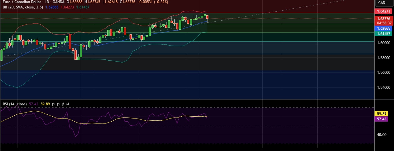 • Immediate resistance is located at 1.6399(23.6%fib), any close above will push the pair towards 1.6427(Higher BB).